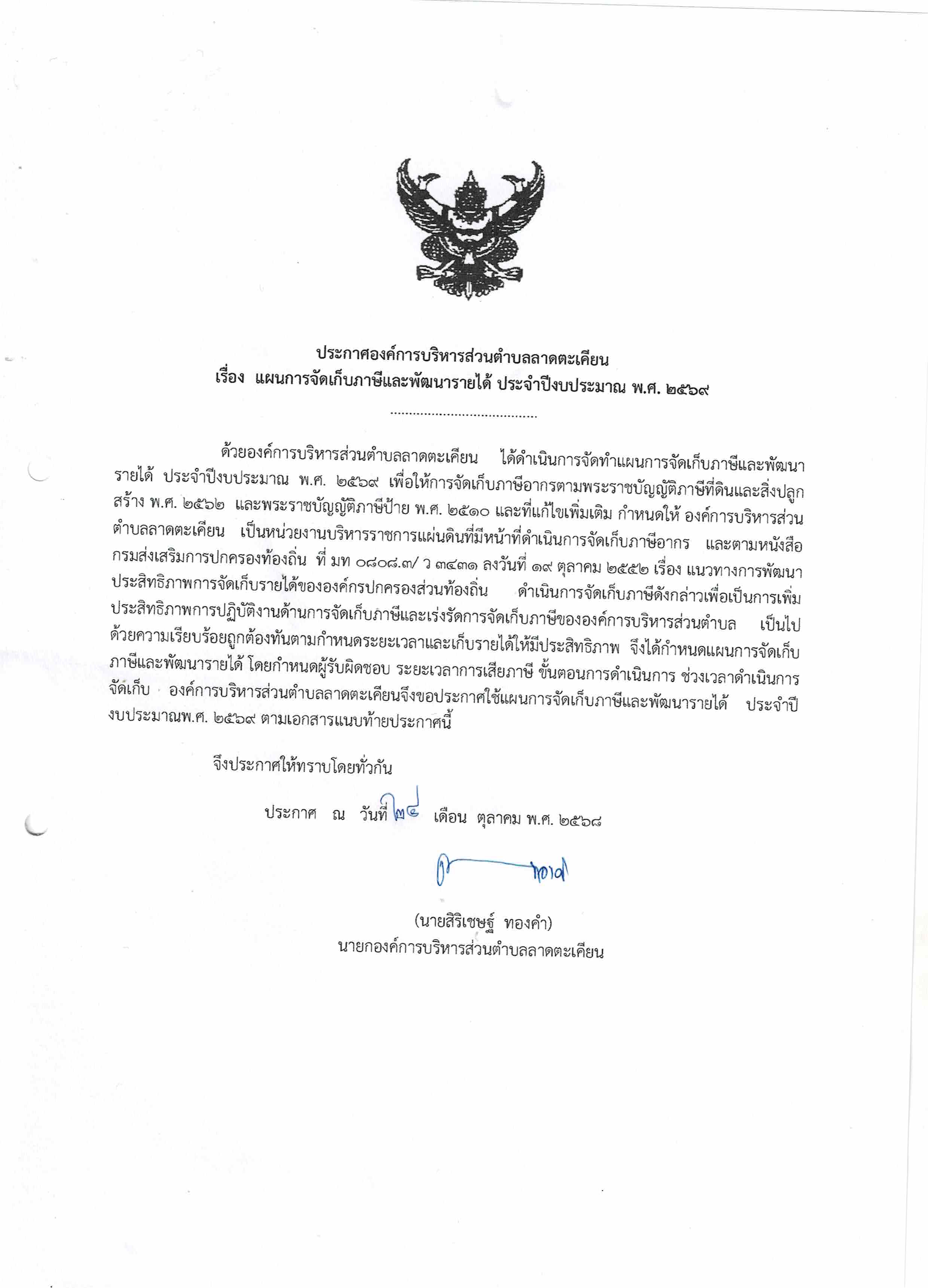 แผนการจัดเก็บภาษีและพัฒนารายได้ ประจำปีงบประมาณ พ.ศ. 2569 |