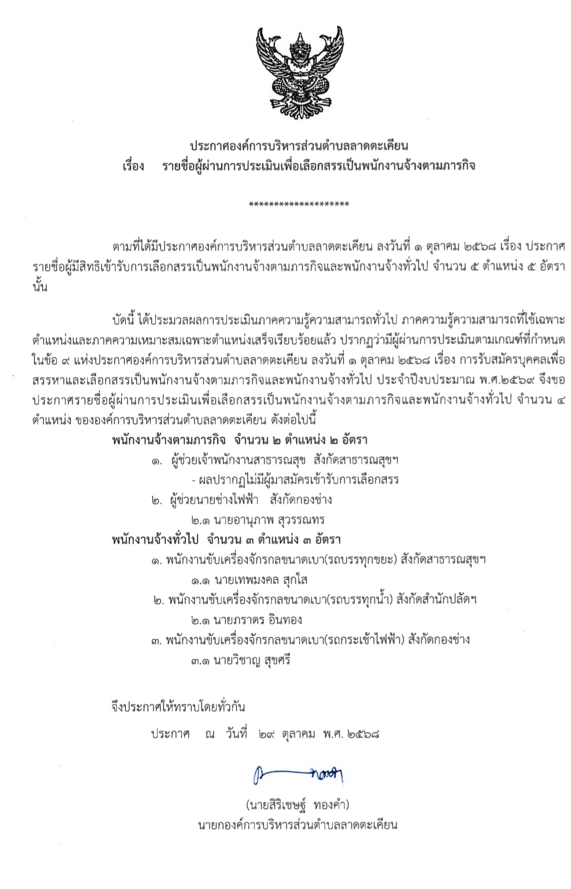 ประกาศรายชื่อผู้ผ่านการประเมินสรรหาเป็้นพนักงานจ้าง |
