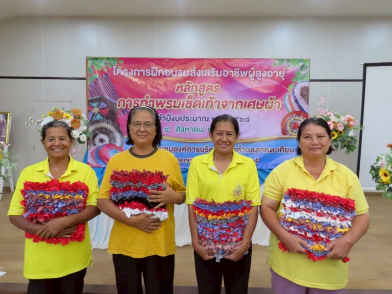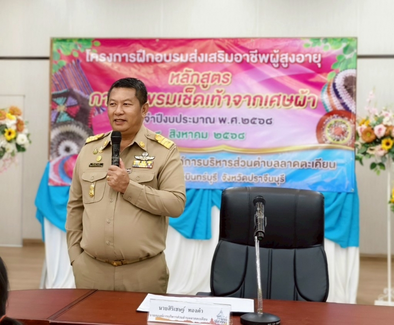 เมื่อวันที่ 4 สิงหาคม 2568 องค์การบริหารส่วนตำบลลาดตะเคียน อำเภอกบินทร์บุรี จังหวัดปราจีนบุรี ได้ดำเนิน โครงการฝึกอบรมส่งอาชีพผู้สูงอายุ (หลักสูตร การทำพรมเช็ดเท้าจากเศษผ้า) ประจำปีงบประมาณ พ.ศ.2568 ณ ห้องประชุมองค์การบริหารส่วนตำบลลาดตะเคียน