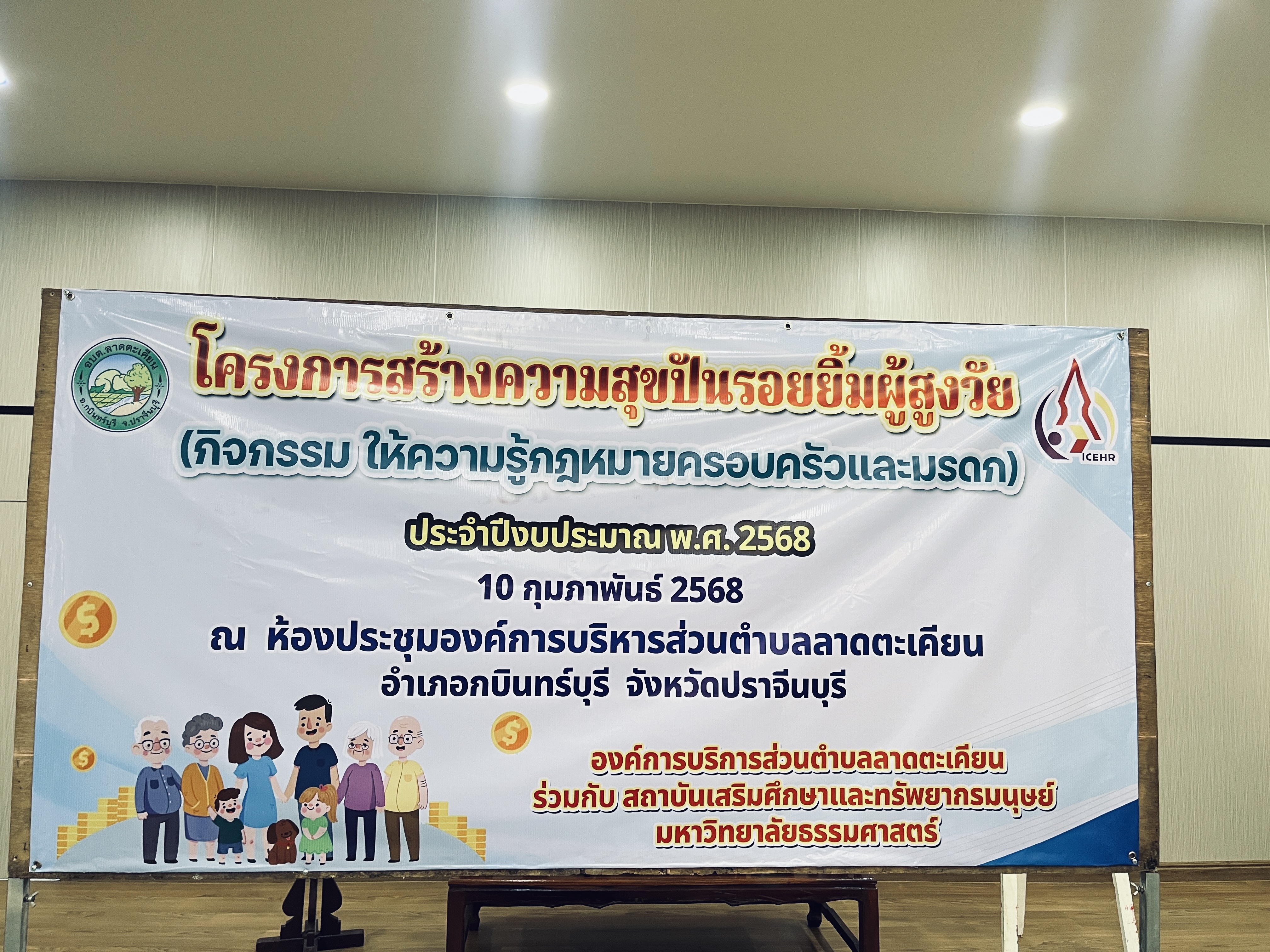 เมื่อวันที่ 10 กุมภาพันธ์ 2568 องค์การบริหารส่วนตำบลลาดตะเคียนร่วมกับสถาบันเสริมศึกษาและทรัพยากรมนุษย์มหาลัยธรรมศาสตร์ ได้ดำเนินโครงการสร้างความสุขปันรอยยิ้มผู้สูงวัย (กิจกรรม ให้ความรู้กฏหมายครอบครัวและมรดก) ประจำปีงบประมาณ พ.ศ.2568 โดยมี นายสิริเชษฐ์ ทองคำ นายกองค์การบริหารส่วนตำบลลาดตะเคียน เป็นประธานเปิดโครงการฯ ณ ห้องประชุมองค์การบริหารส่วนตำบลลาดตะเคียน
