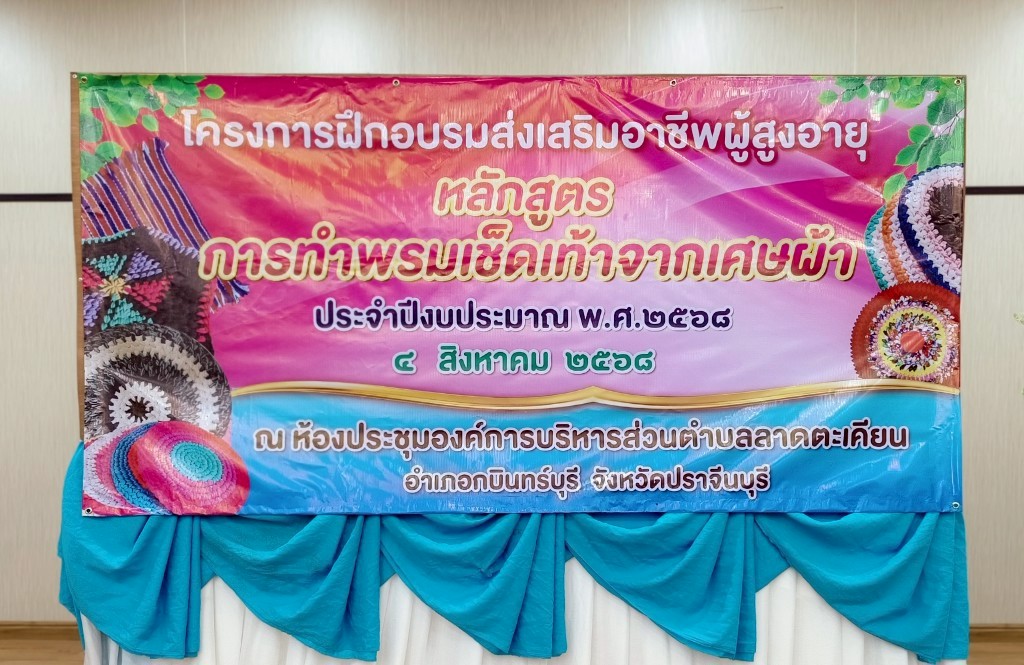 เมื่อวันที่ 4 สิงหาคม 2568 องค์การบริหารส่วนตำบลลาดตะเคียน อำเภอกบินทร์บุรี จังหวัดปราจีนบุรี ได้ดำเนิน โครงการฝึกอบรมส่งอาชีพผู้สูงอายุ (หลักสูตร การทำพรมเช็ดเท้าจากเศษผ้า) ประจำปีงบประมาณ พ.ศ.2568 ณ ห้องประชุมองค์การบริหารส่วนตำบลลาดตะเคียน